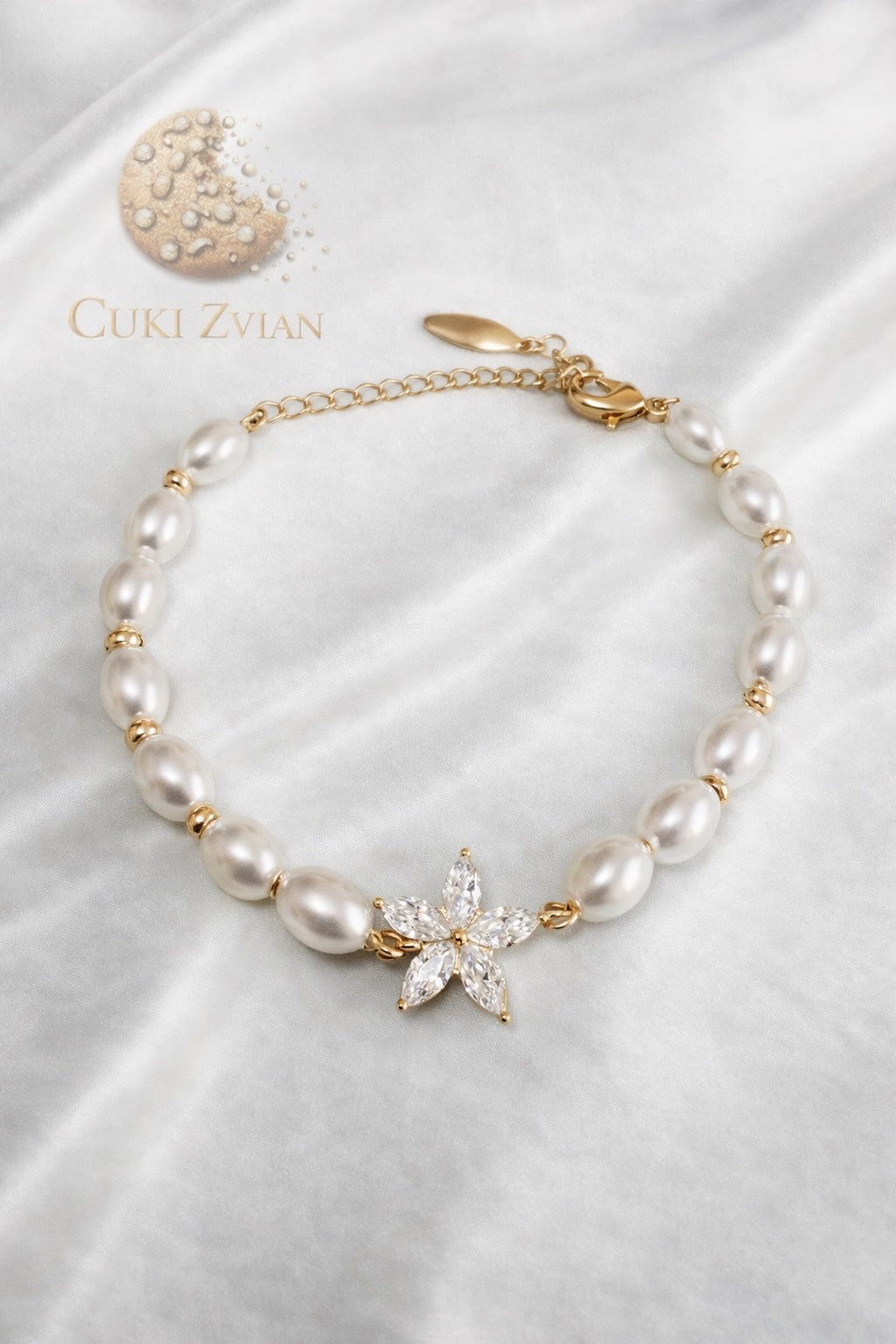 La pulsera Cuki Zvian es una pieza delicada y sofisticada que combina la elegancia clásica de las perlas con un diseño moderno y luminoso. Sus perlas de acabado suave y nacarado se complementan perfectamente con un delicado detalle central en forma de estrella, elaborado con cristales brillantes que reflejan la luz con un resplandor excepcional.