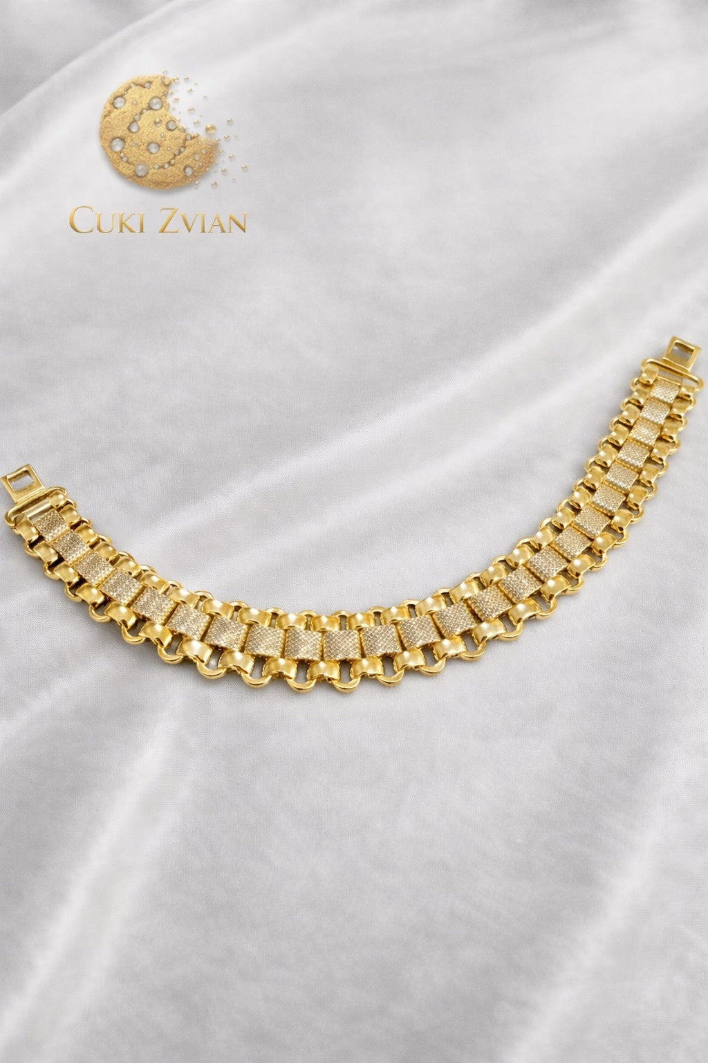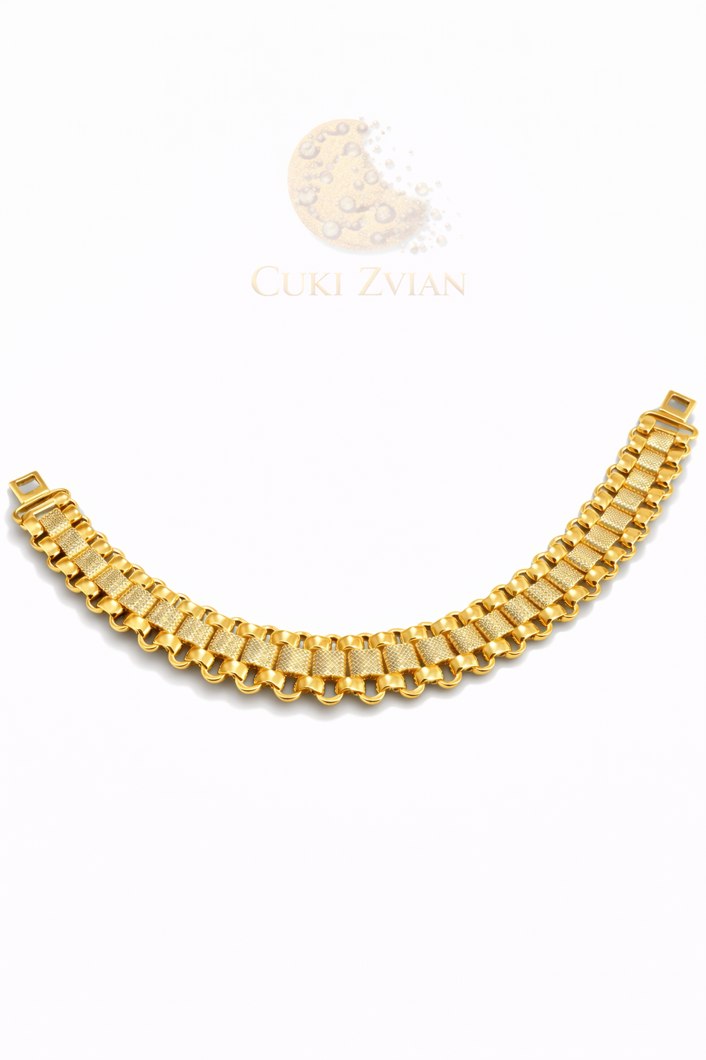 Cada joya de Cuki Zvian es hecha a mano en Asia por artesanos expertos, quienes trabajan cada detalle con precisión para lograr un acabado impecable. Esta pulsera cuenta con un baño en oro de 14 quilates, que le aporta un brillo intenso, durabilidad y una presencia distinguida.